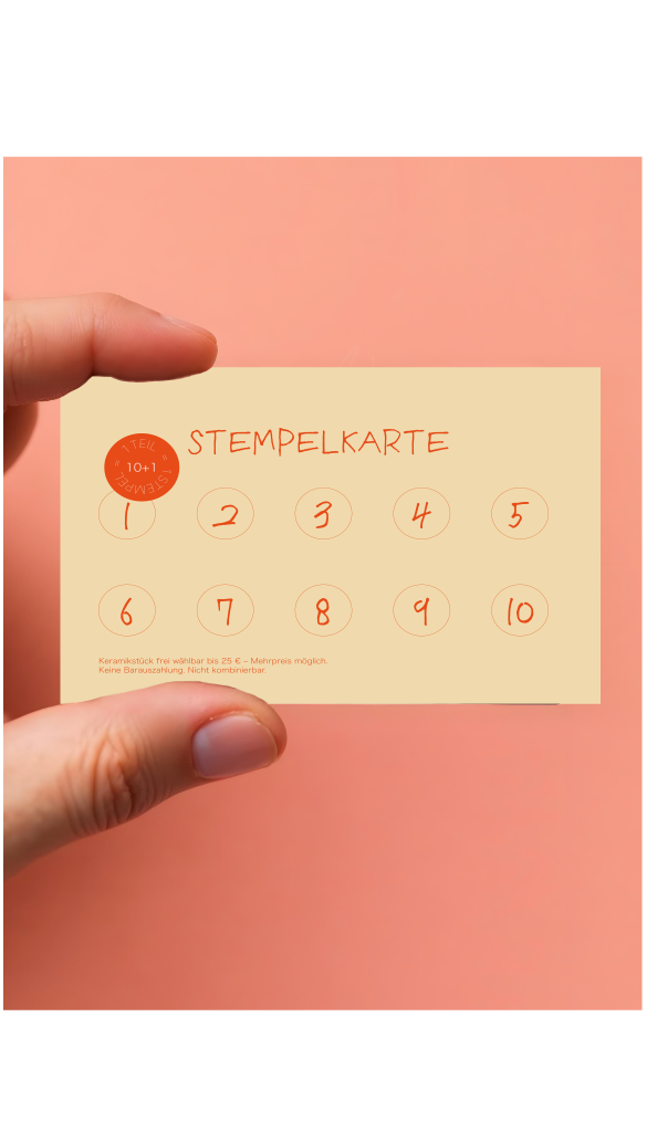 Hol dir deine Stempelkarte direkt bei uns im Laden. Für jedes Teil erhältst du einen Stempel. Sobald du zehn Stempel gesammelt hast, darfst du dir ein Teil deiner Wahl aussuchen – kostenlos.